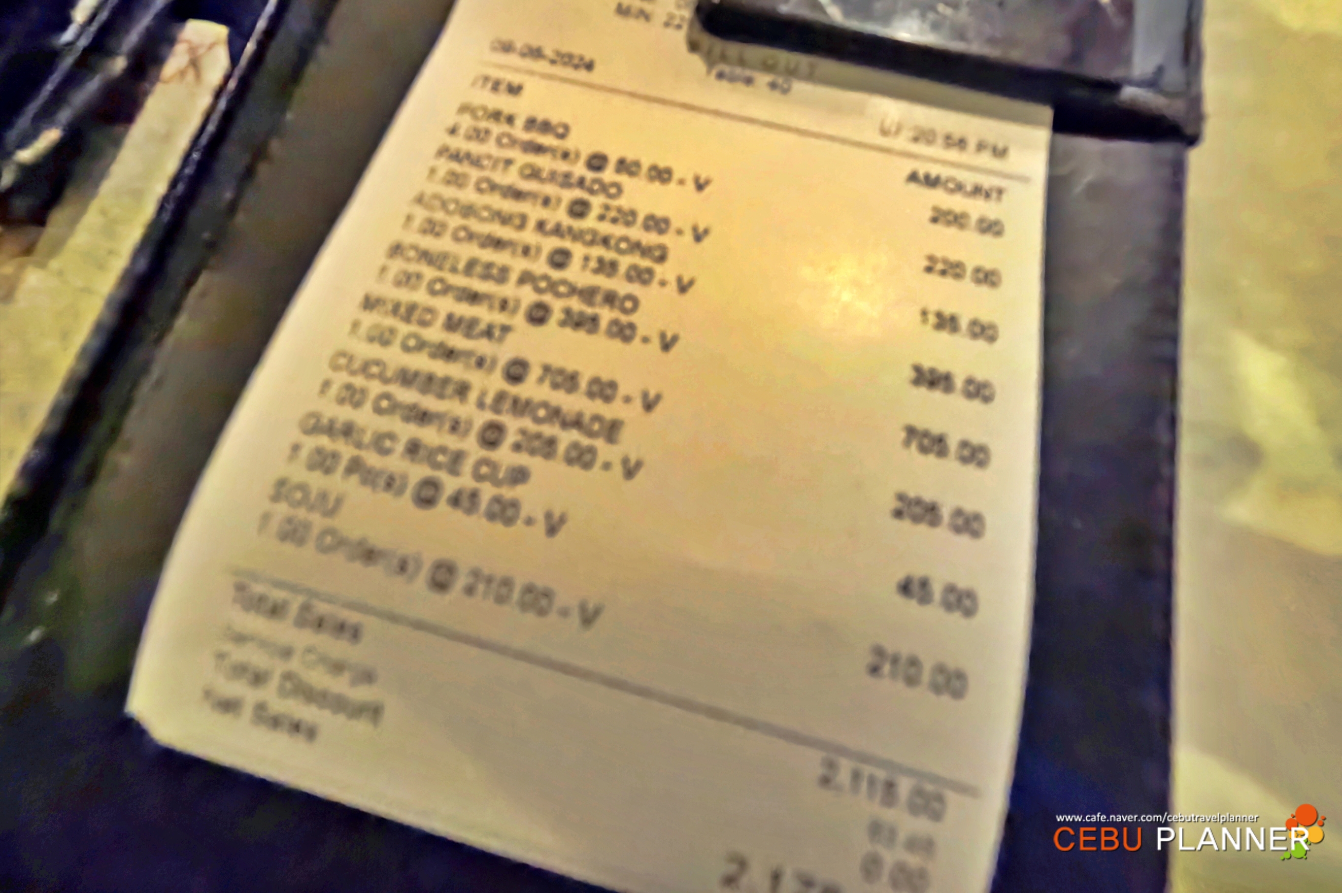 4명이서 음식을 남길 정도로 먹고 2100페소 약 5만 원 정도 나왔는데 상당히 뿌듯했죠~~ 이와 비슷한 다른 곳에서 먹었다면 두 배정도는 더 나오지 않았을까 싶네요~~