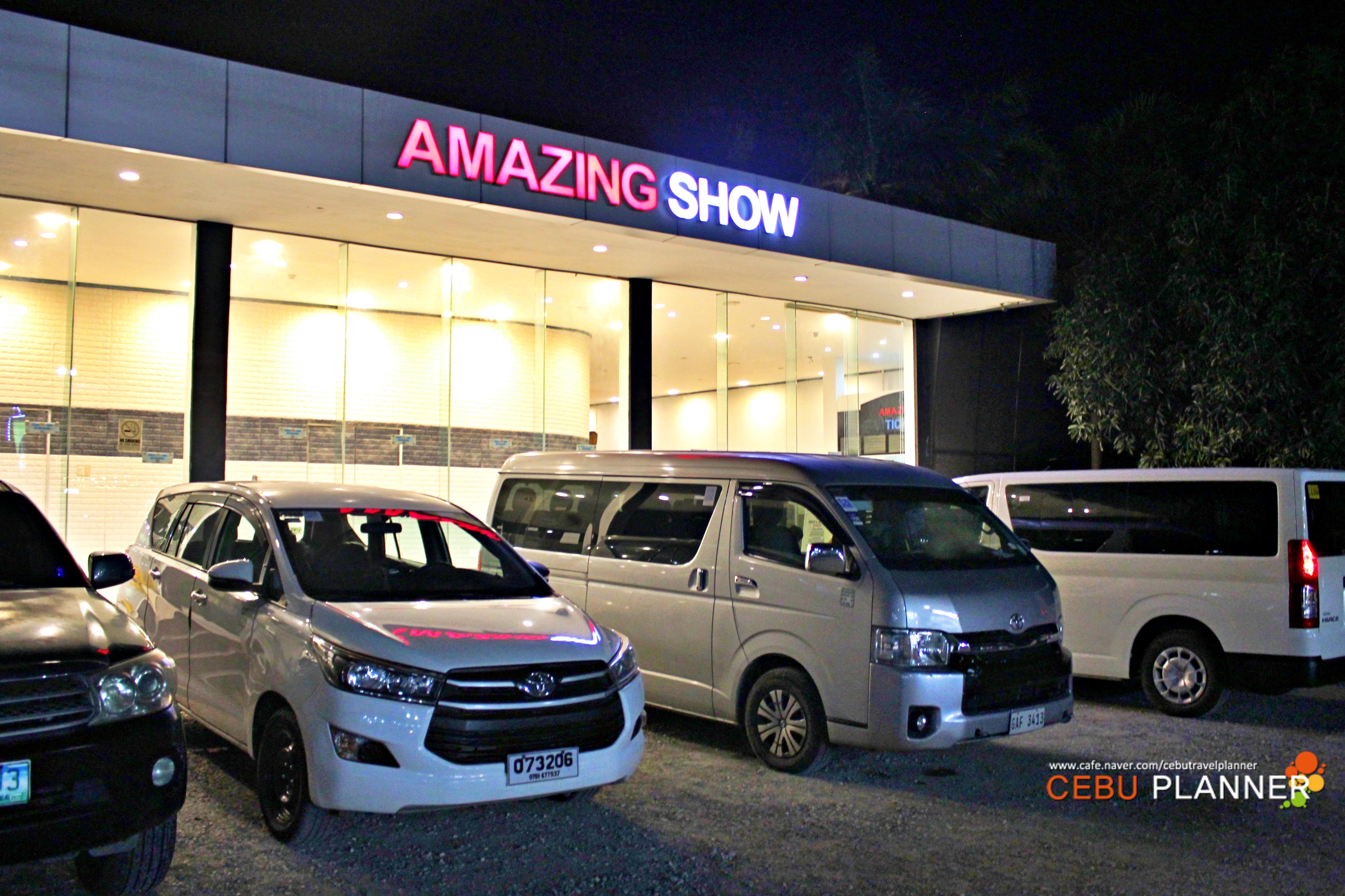공연장은 막탄에 있으며 마리바고 블루워터 리조트에서 차로 5분 제이파크와 크림슨리조트에서는 차로 10분 정도 거리에 있으며 택시를 타고 가는 경우에는 어메이징쇼라고 말씀하시면 되고 그랩등을 이용해서 가는 경우에는 지도에 어메이징쇼로 찍으면 됩니다.