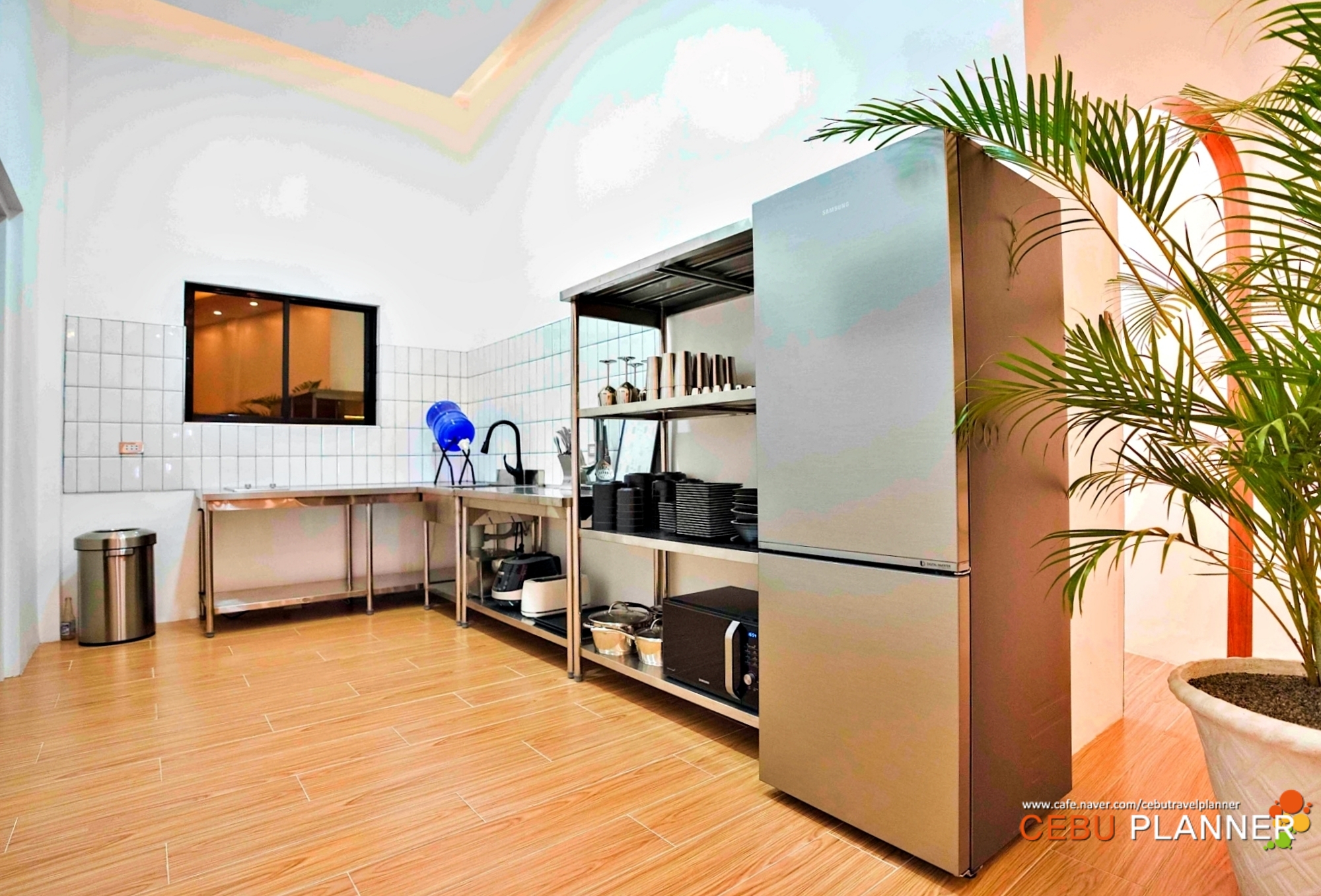 주방은 별도로 분리가 되어 있고 전체적으로 스테인리스로 되어 위생적인 느낌이 들고 기본적은 주방기기와 여러 조리도구들이 구비되어 있어 직접 음식을 해 먹을 수 있고 식사준비하는 것이 귀찮으면 배달앱이나 한인 음식점에 주문을 해서 풀빌라 안에서 식사하는 것도 가능합니다.