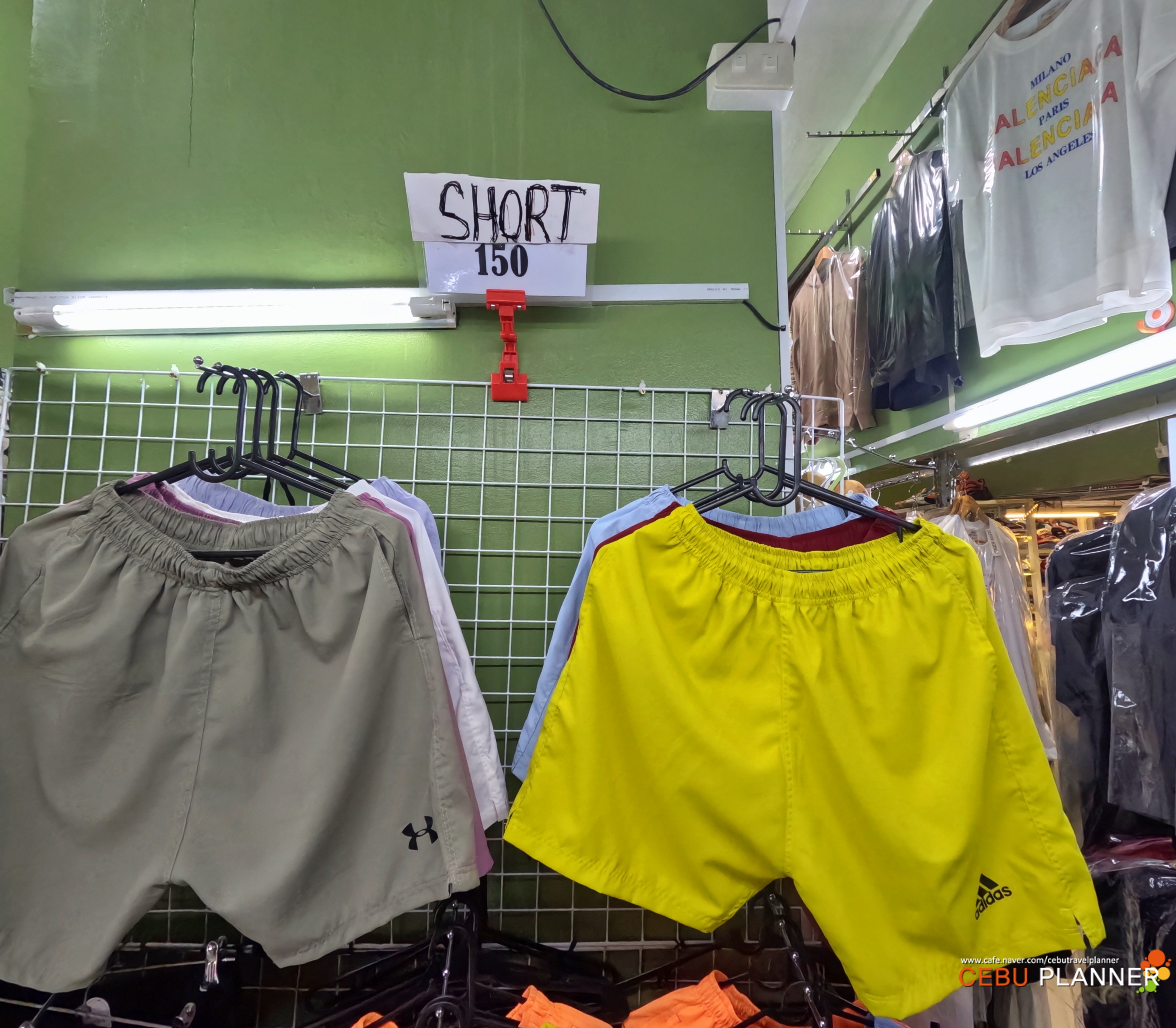 유명 브랜드 반바지와 티셔츠는 150페소, 원화로 약 4000원 정도였어요. 제가 입고 있는 브랜드의 티셔츠도 있길래 가격을 비교해 보니15배 정도 저렴하네요.^^