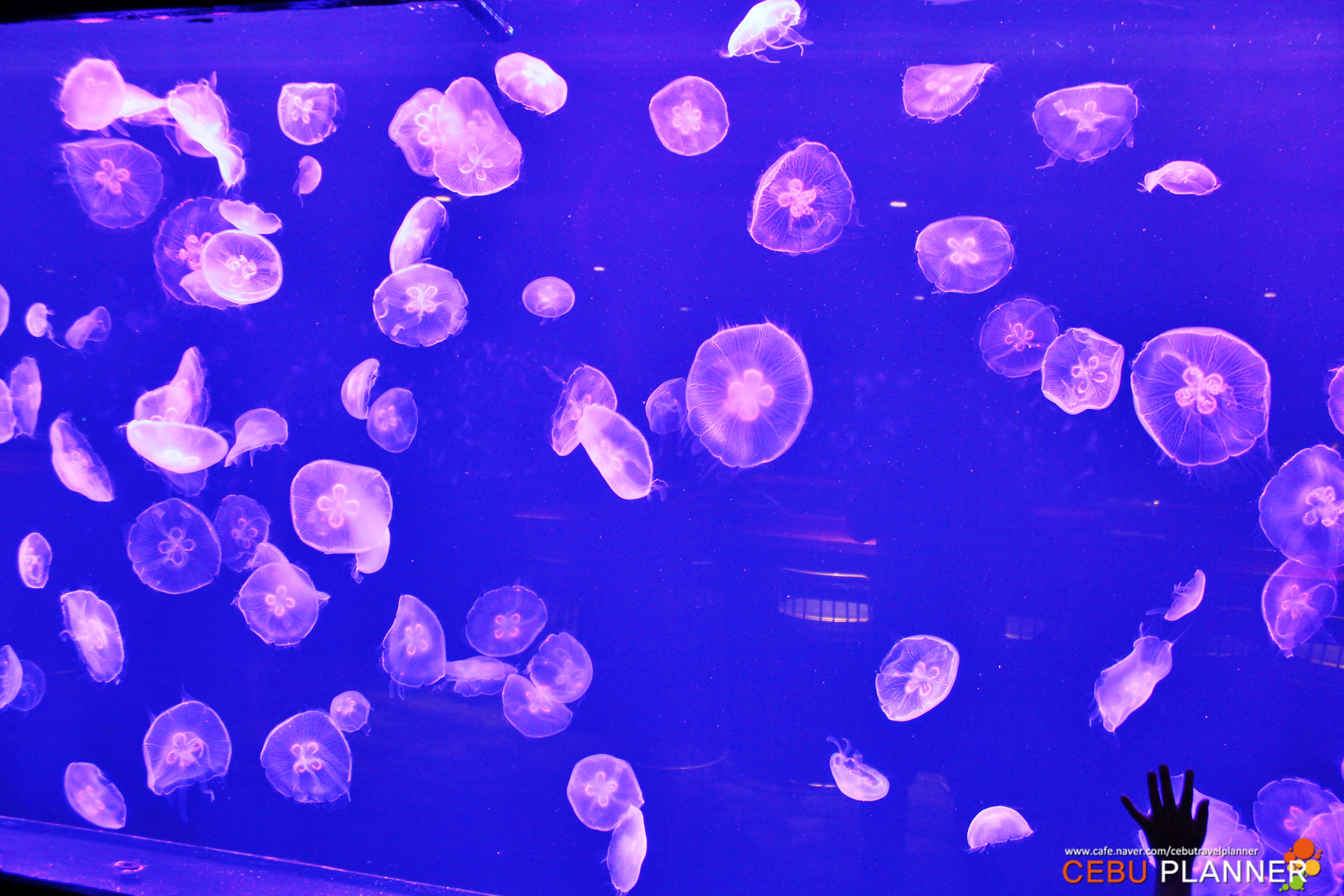 해파리는 물에서 잘 안 보이는 조명을 비추니 오묘한 느낌이 나는 멋진 광경을 연출하네요 애들도 신기한지 한동안 계속 지켜볼 정도로 독특한 모습을 볼 수 있습니다.