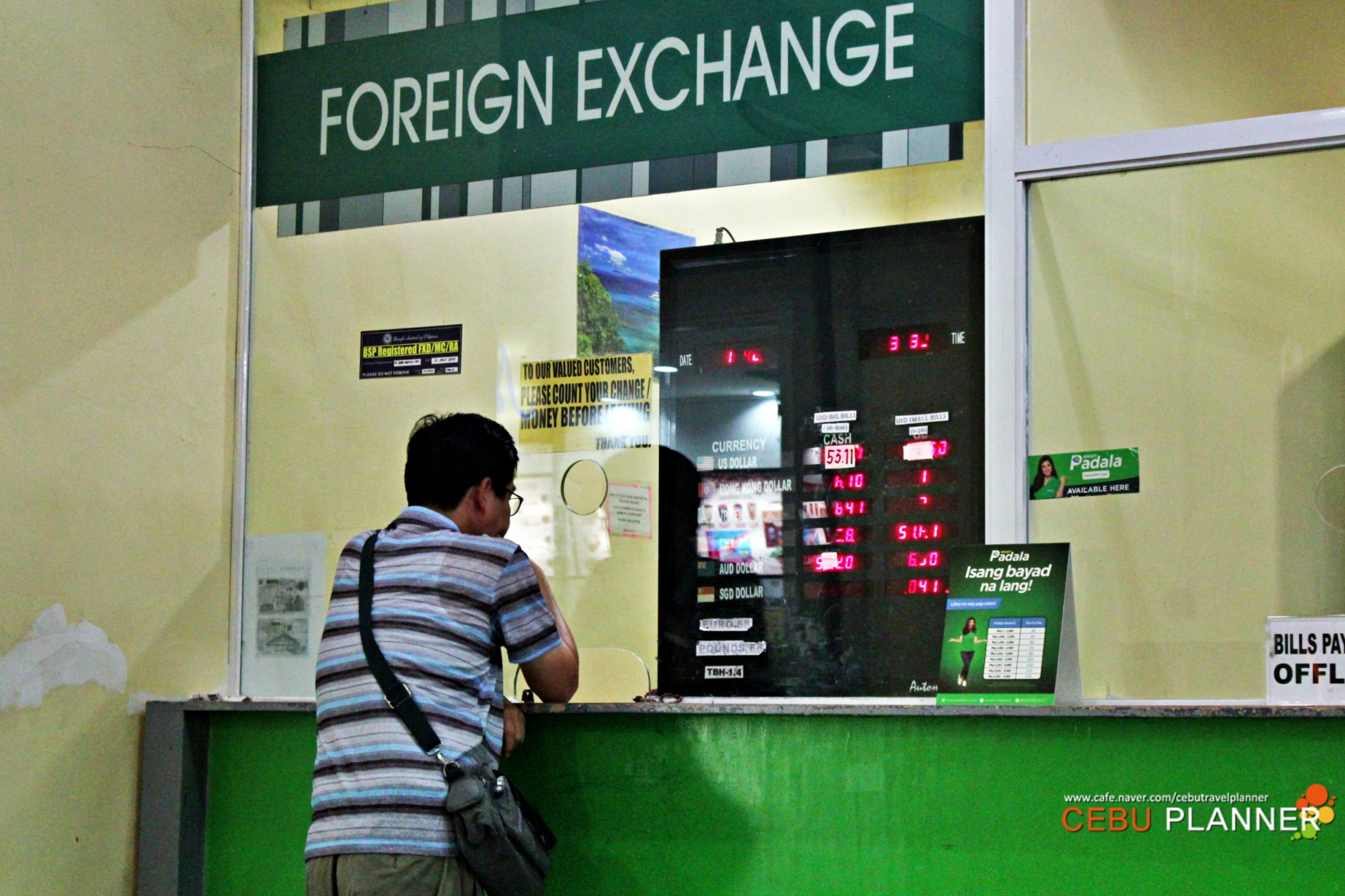 특히 공항에서는 최소의 비용만 환전하세요 세부에서 가장 환율이 안 좋거든요~